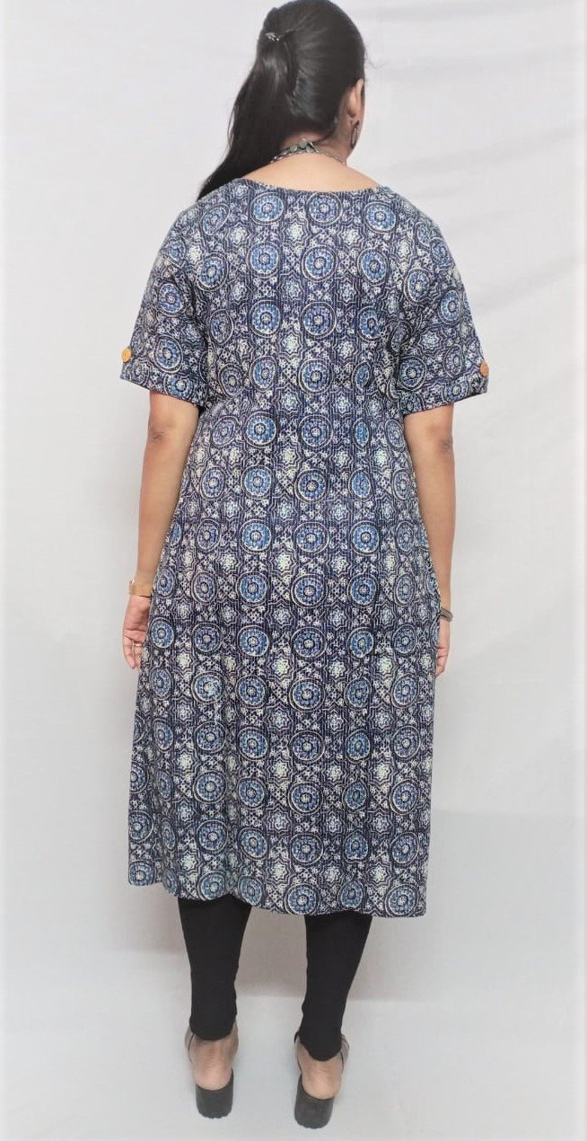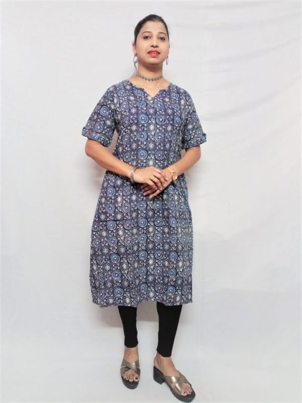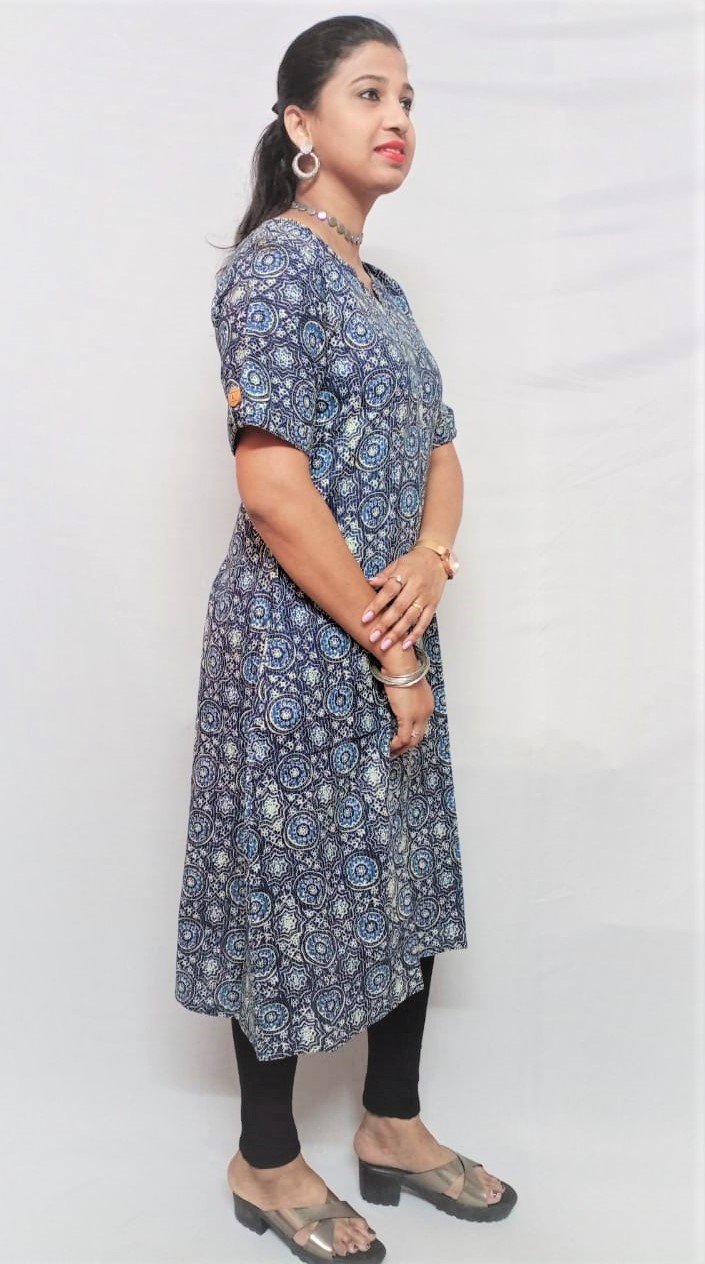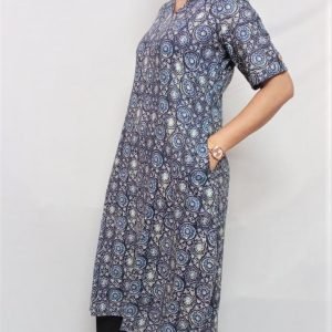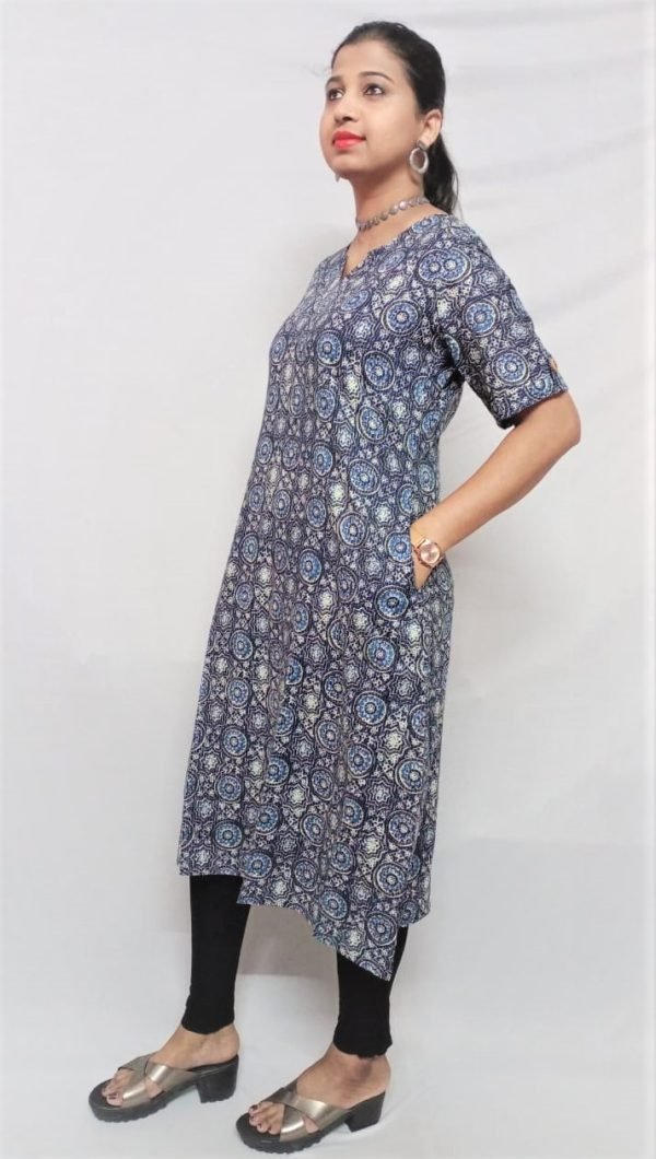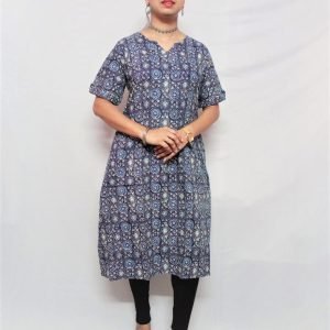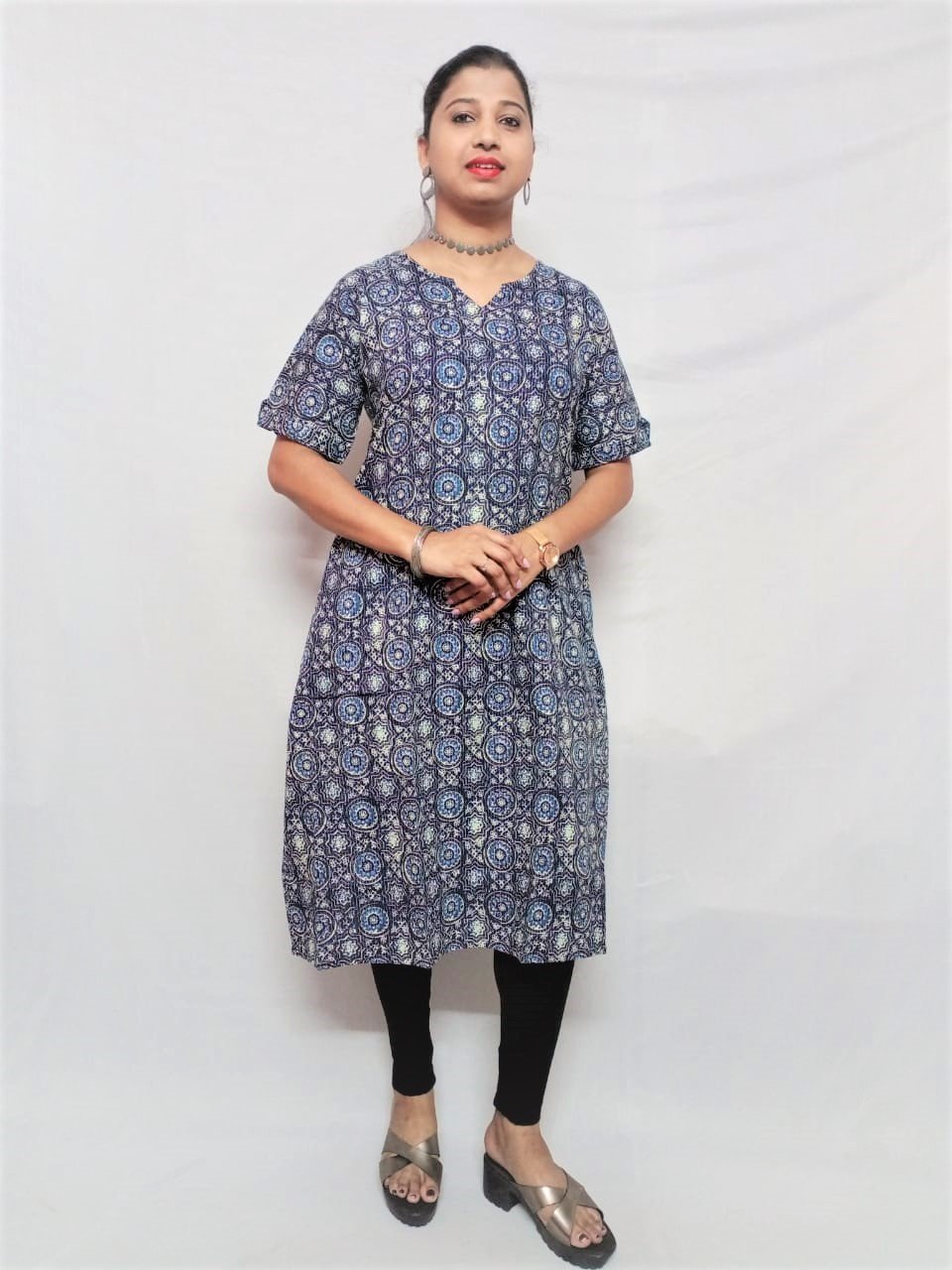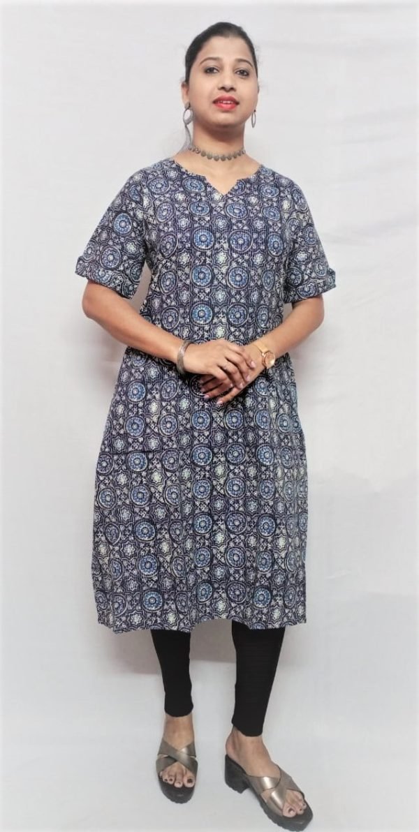 Arjey’s Cotton A-Line Kurti With Side Pocket Navy Blue Printed for Women’s