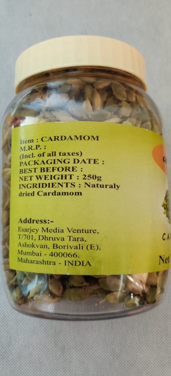 Arjey’s Green Cardamom 8mm Elachi 250 g Packet..