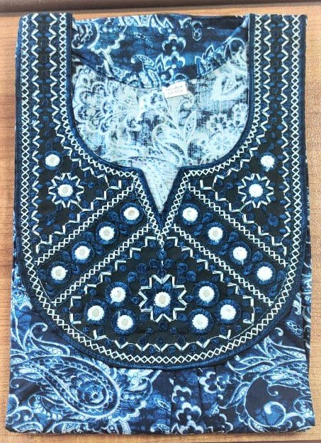 Arjey’s Loose Fit Nighty Long Maxi Sleepwear Nightgown with Pockets for Women’s or Ladies with Printed Super Soft Comfortable Design – Blue with mirror work