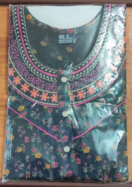 This nightdress from Arjey’s is drop dead gorgeous. Complete with a Stylish Design work on neck, comfortable nightwear choice.