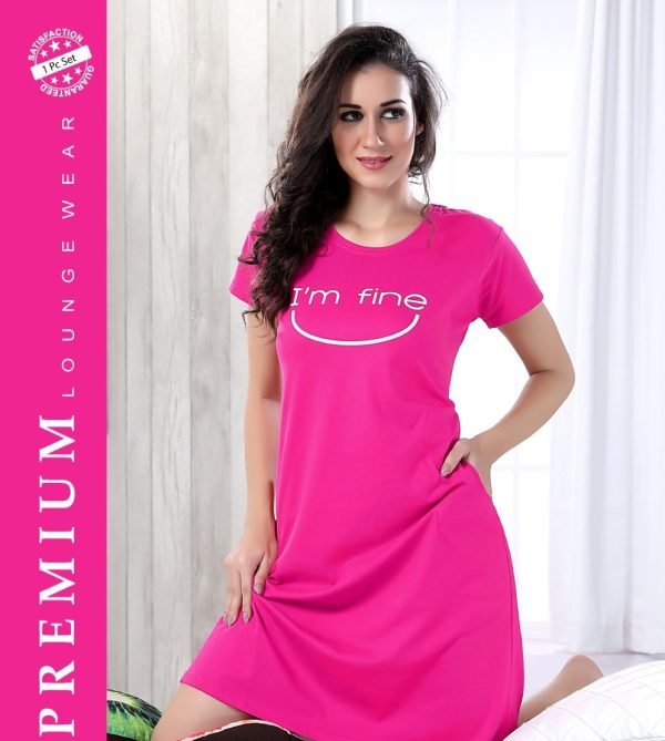 Arjey’s Loose Fit Nighty Short Maxi Sleepwear Nightgown with pocket for Women’s or Ladies with Printed Super Soft Comfortable Design – Pink