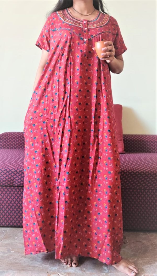 Arjey’s Women Wear Cotton Nighty Sleepwear Nightdress Long Maxi Free Size Nighties Red