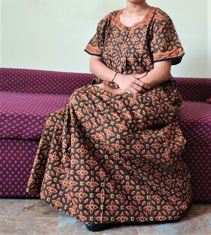 This delicately embellished rich long Printed night dress for a sweat-free comfort all night long. This is a perfect pick for women who are fond of stylish nightwear. This Half sleeved nighty is a must-have for your nightwear needs. Made with 100% soft cotton to keep you cool all throughout. This beautiful nighty comes in free size and completely. The stylish flow makes it a great combo for women of any age and any body type!