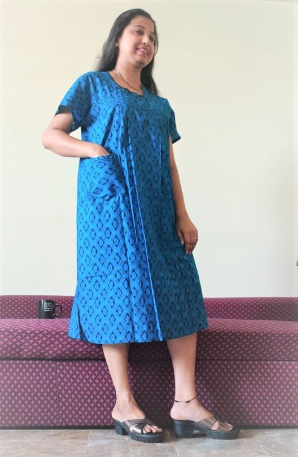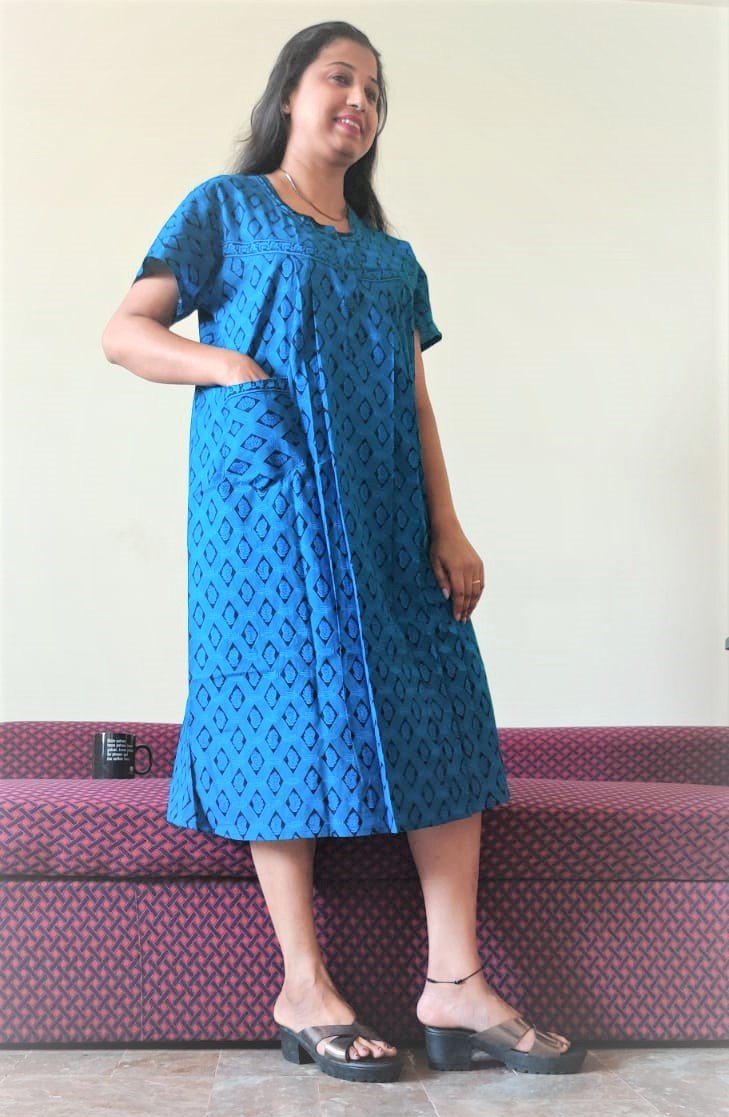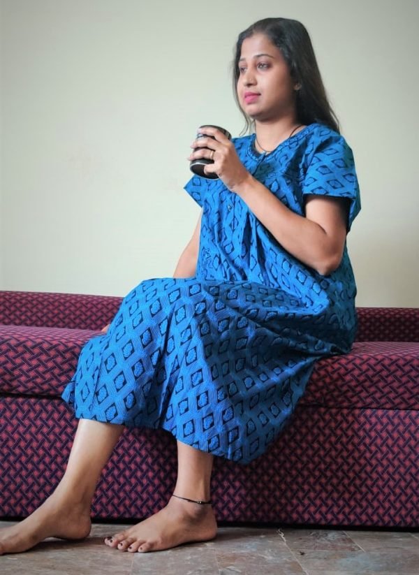 This delicately embellished rich long Printed night dress for a sweat-free comfort all night long. This is a perfect pick for women who are fond of stylish nightwear. This Half sleeved nighty is a must-have for your nightwear needs. Made with 100% soft cotton to keep you cool all throughout. This beautiful nighty comes in free size and completely. The stylish flow makes it a great combo for women of any age and any body type!