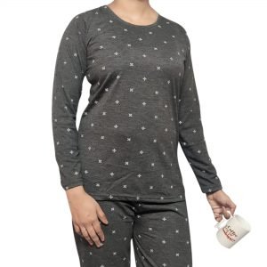 Arjey’s Women’s Cotton Printed Night Suit Set of Full sleeves T Shirt with Pyjama – Black