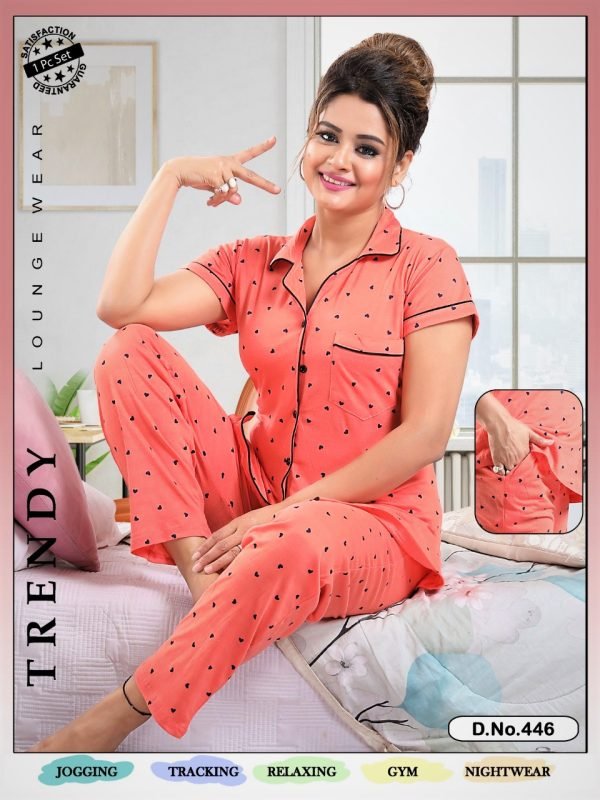 Arjey’s Women’s Cotton Printed Night Suit Set of Short Sleeves Shirt with Pajama – Carrot Orange